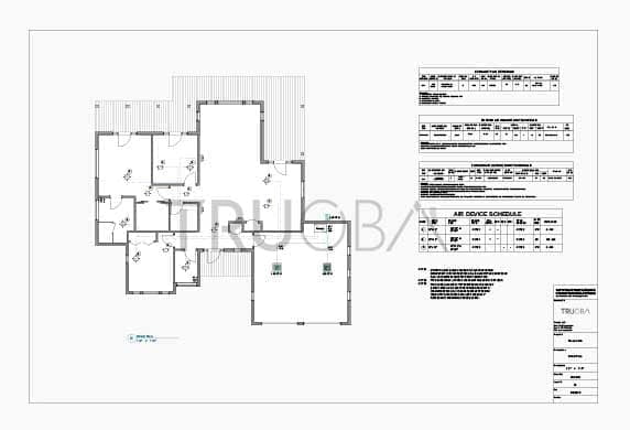 Indicates location and specifications for heating, ventilation and air conditioning.