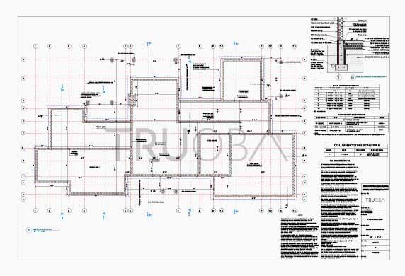 General foundation design showing foundation layout with structural elements. There are three types of foundation to choose from: slab, crawl, and basement.